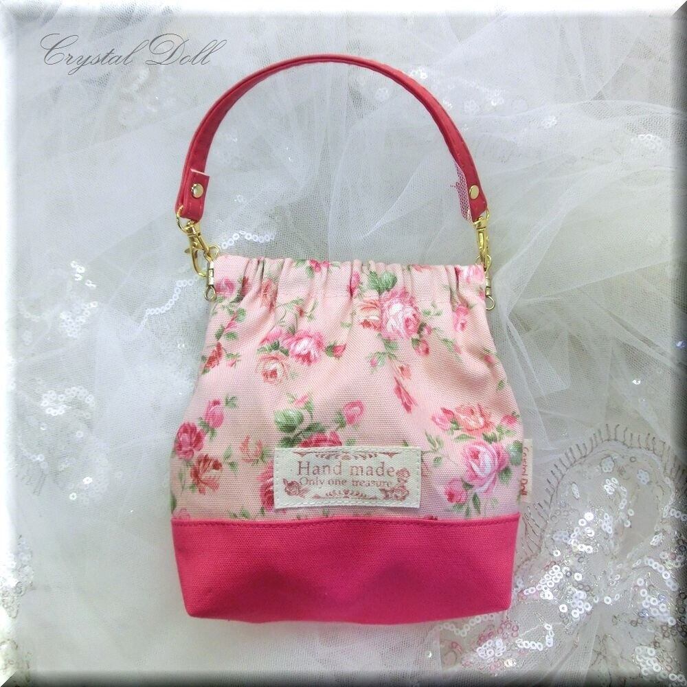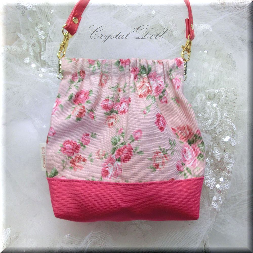 ピンクの薔薇が優しいイメージの生地でバネポーチを作ってみました。