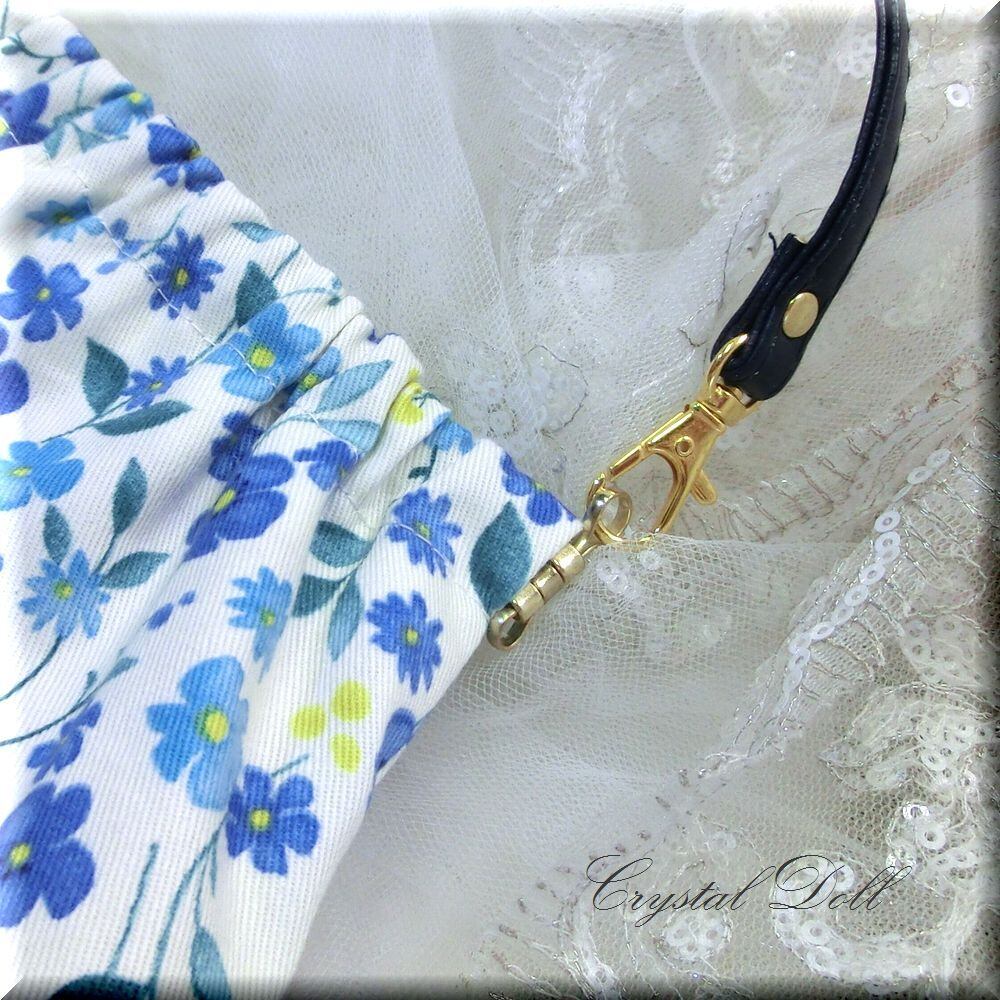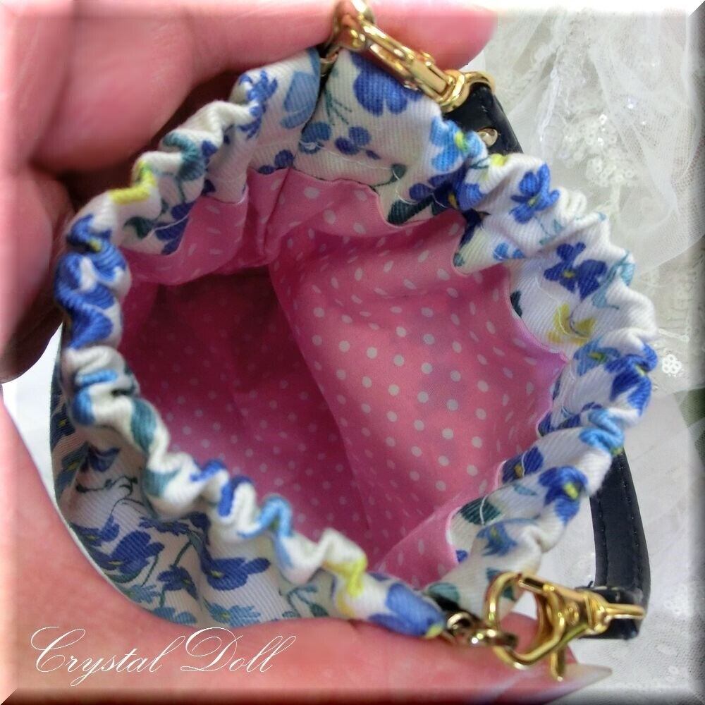 青いお花が可愛いプリントの生地でバネポーチを作ってみました。