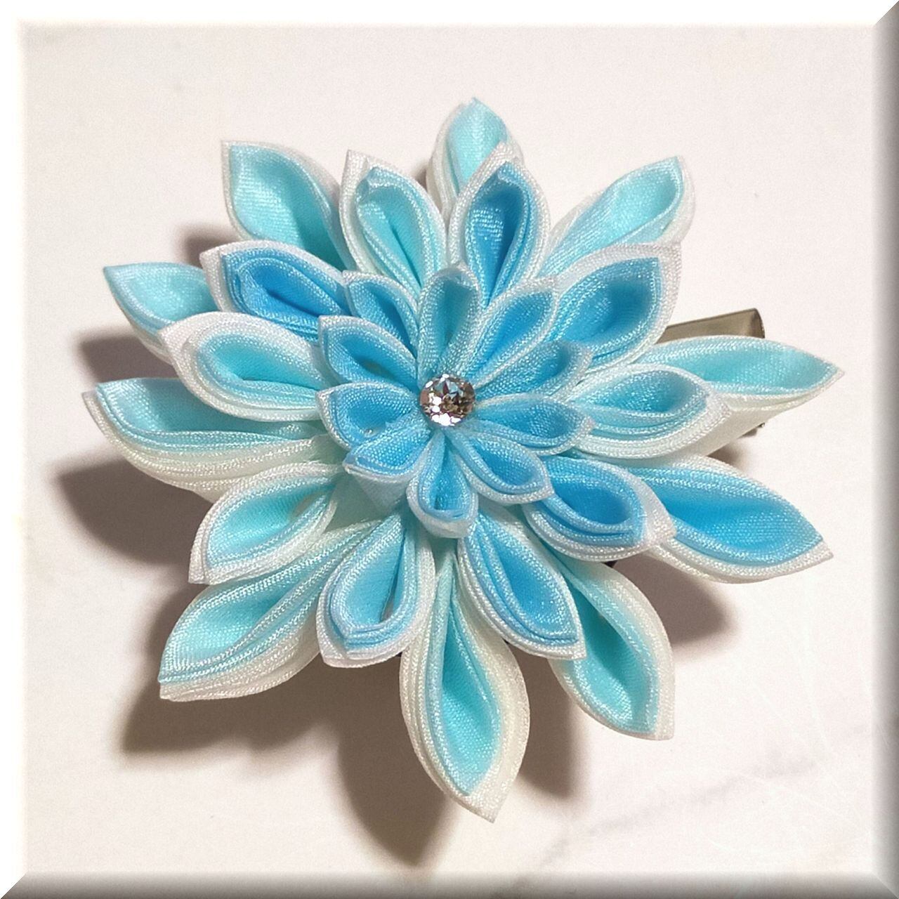つまみ細工は和風のイメージですが、洋装にも似合うと思います。